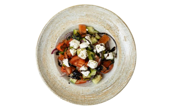 Domate, tranguj, ullinj kallamata, feta, vaj ulliri, qepë e kuqe